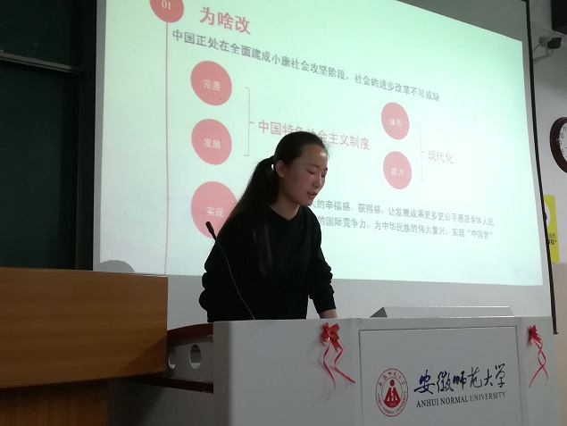 在党章的学习后,第二、第三团小组组长冯坤德、周林娟带领大家学习了十九届二中全会和三中全会的主要精神。部分同学根据学习感悟作了发言。接着,团支书王紫薇以《时代之问》专题片为切入点,就“将改革进行到底,实现中华民族伟大复兴”这一主题与同学们进行了深入探讨,激发了同学们的民族自豪感与自信心。
