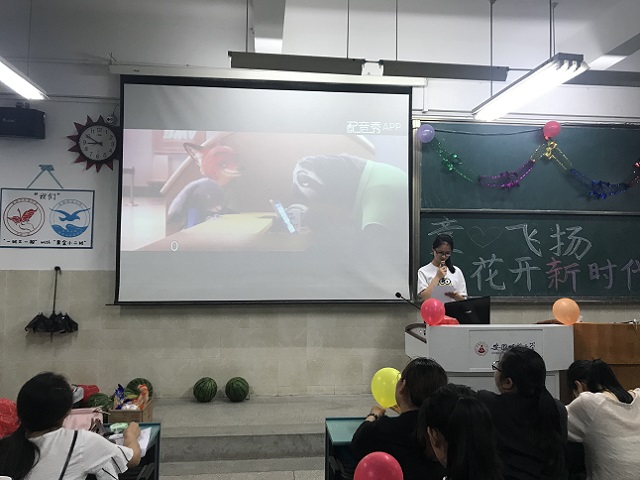 下一个环节是声临其境,每一帧画面饱含着儿时的回忆,选手饱含深情为动画片配音,最终胡孟星以8.7的高分胜出,彭文婷和李梦晴以8.4的高分位列其次,每名胜出的选手都赢得了大西瓜一个。随后,15级空乘的学长学姐给同学们带来空乘专业的晚会入场券和一些小礼品,邀请同学们参加。“一木不成林,百花方为春”最后的吃瓜大赛则是体现凝聚力的时刻。每一队半个西瓜,用时最短吃完的一组即为胜出组,泱泱材化,团结自尚,通过这个比赛,小组成员领会到一个团队劲往一处使的道理。活动结束后,班委们打扫完卫生,本次活动圆满结束。