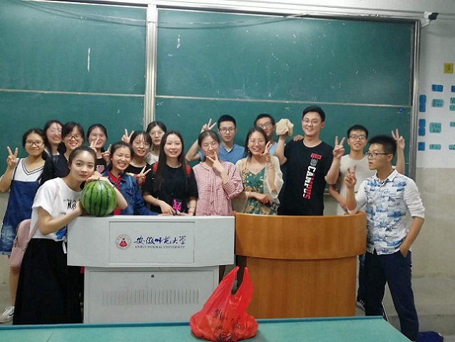 《小王子》里曾言:每一个大人都曾是孩子。在六月一号这个充满着纯真与欢笑的节日,为增强班级凝聚力,加强不同专业学生间交流,17级材料化学一班携手15级空乘的学长学姐在2010401联合举办了“童心飞扬 花开新时代”主题活动。 活动伊始,由班委发放儿童节福利,每位同学都喜笑颜开,仿佛回到七八年前,排排坐,分果果的小学时光。接下来,进行了活动的第一个环节:猜动画片。各组同学重交流,抒己见,于沟通中回顾少时记忆,井然有序地参与活动,并领取了奖品。 下一个环节是声临其境,每一帧画面饱含着儿时的回忆,选手饱含深情为动画片配音,最终胡孟星以8.7的高分胜出,彭文婷和李梦晴以8.4的高分位列其次,每名胜出的选手都赢得了大西瓜一个。随后,15级空乘的学长学姐给同学们带来空乘专业的晚会入场券和一些小礼品,邀请同学们参加。“一木不成林,百花方为春”最后的吃瓜大赛则是体现凝聚力的时刻。每一队半个西瓜,用时最短吃完的一组即为胜出组,泱泱材化,团结自尚,通过这个比赛,小组成员领会到一个团队劲往一处使的道理。活动结束后,班委们打扫完卫生,本次活动圆满结束。 此次活动顾往昔童心,系班级凝聚,在材化一班全体同学的精心准备下完满演绎。在这个新时代,作为大学生,应该不忘初心,保持童心,探索科学的神秘,国家的昌盛,让青春之花永不凋零。