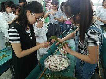 感恩父亲,情连端午。为了传承传统文化精神,增强学生的感恩意识,培养学生动手能力,6月14日下午,2017级应用化学2班开展了父亲节、端午节主题活动。班级全体同学共同参与了此次活动。 活动伊始,在主持人的简单介绍和讲解下,班级依照团小组划分为三个小组进行包粽子比赛。在前期钻研和视频教学的指导下,同学们积极参与,一起动手包粽子。同学们积极学习,相互配合,把自己对端午的喜爱包裹进了一个一个的粽子中,把端午情结编织进了欢声笑语之间。比赛由第一团小组数量第一和第三团小组质量第一告终,并为王鑫雨同学颁了最佳粽子奖。
