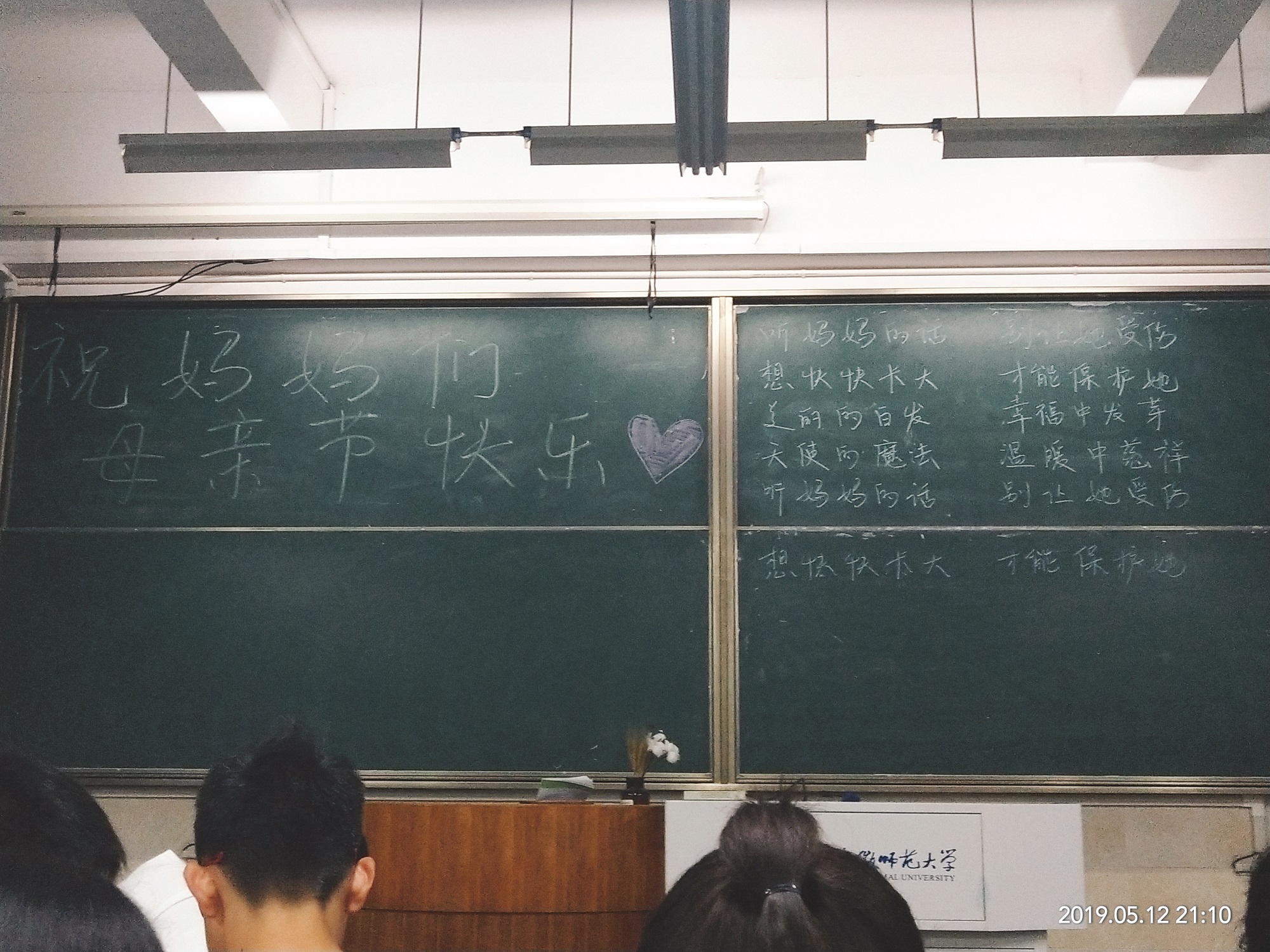 本网讯(18应化2班 吴吉祥 )母爱似水, 点点滴滴竟是温柔与包容,博大而无私,奉献到老。为弘扬中华民族传统美德,呼吁更多的人关注母亲节,回报母爱,培养大学生对母亲的感恩之心, 在母亲节当日,在辅导员陶勇安排下,安徽师范大学卡通色情 2018级应用化学专业全体同学在2019年5月12日晚于行知楼2010308教室合唱了一首《听妈妈的话》送给我们最亲爱的母亲。