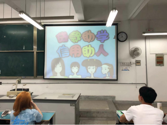 首先,在陶勇老师的带领下大家一起观看了关于诚信教育的宣传片,使很多同学们意识到诚信为本当以律己的重要性。
