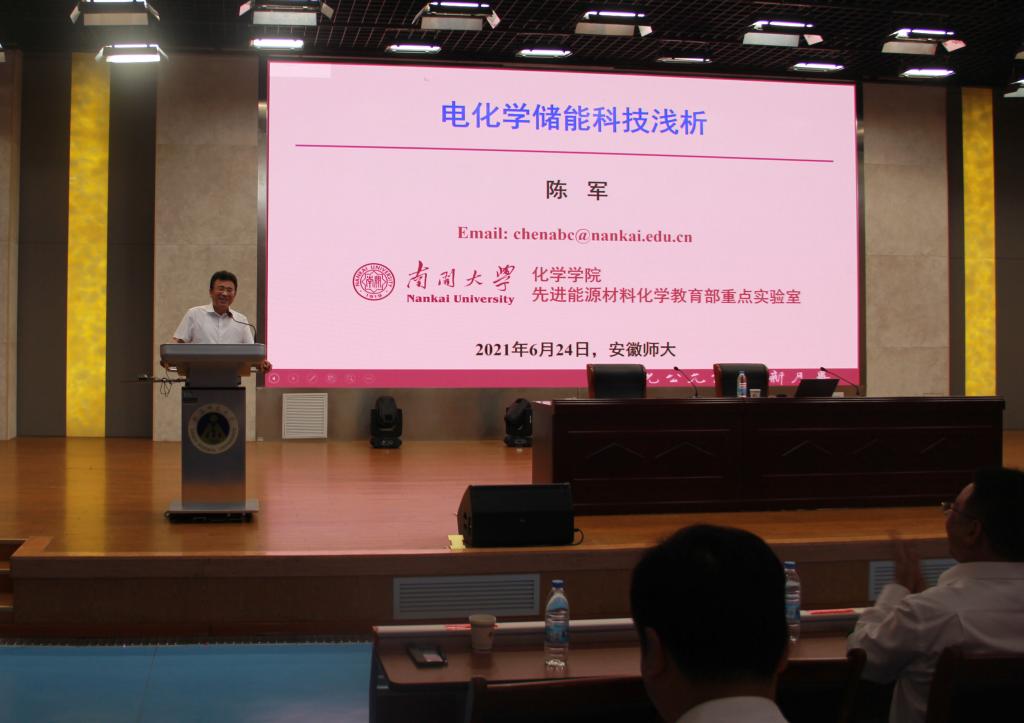 孙健)应学校邀请,6月24日晚在花津校区实习实训中心一楼报告厅,南开大学副校长、中科院院士陈军来校作了题为“电化学储能科技浅析”的学术报告。报告会前,学校党委副书记、校长张庆亮亲切会见了陈军院士,感谢陈院士长期以来对安徽师范大学学科建设的支持!报告会由卡通色情