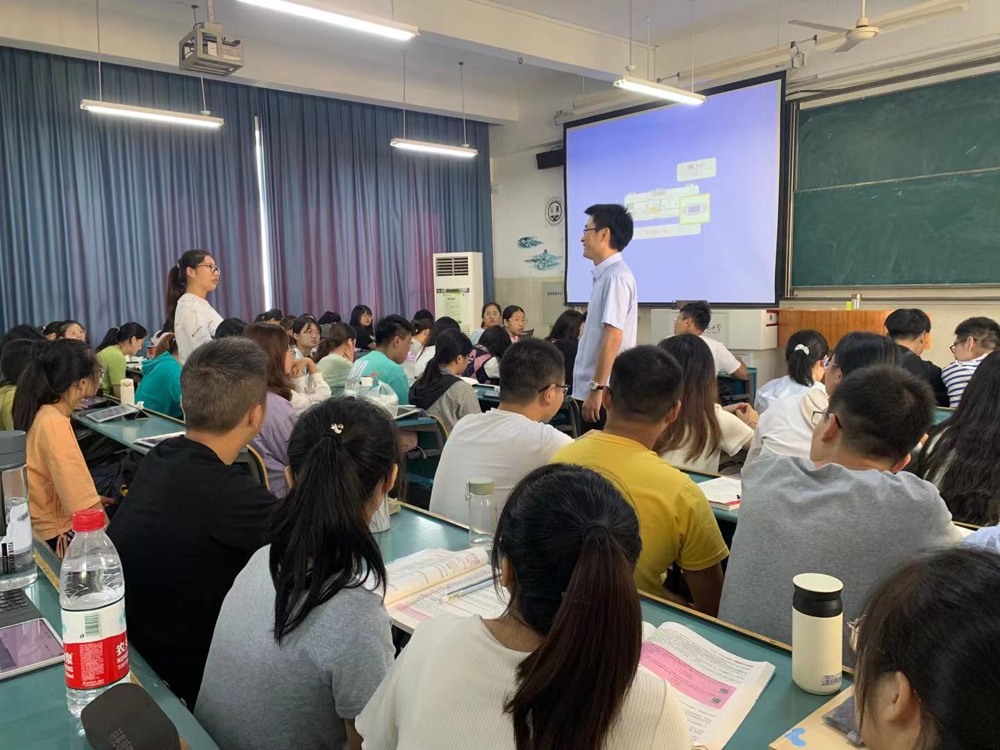 苏振华老师以“为什么选择师范专业?”展开,引导学生们心怀梦想的同时又要脚踏实地。接着,苏老师提出青年教师成长为名师的途径为:提升教学能力,比赛获奖;辅导学生竞赛,赢得奖牌和提升教研水平,发表论文专著这三个方面。提醒学生在学校阶段应多读书夯实专业知识,并且关注教学前沿,提升自身教学设计能力。紧接着,苏老师重点从课标、核心素养等方面介绍了教学设计书写的注意事项。最后展示大单元教学中的一节课例,让学生们具体感受到了真实的教学过程。报告结束后,同学就自己感兴趣的问题与苏老师进行热烈的交流讨论。