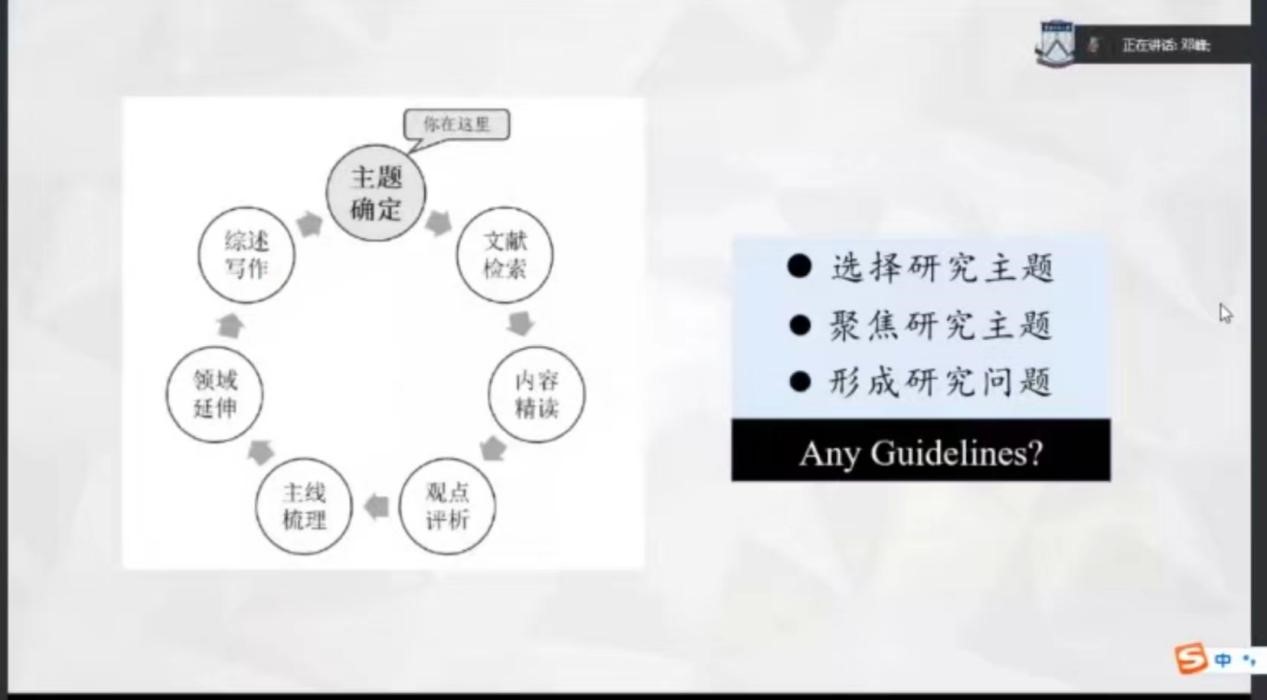 邓峰老师在报告中,首先对什么是化学教育文献综述、为何要做化学教育文献综述两个问题进行了解答,并结合实际,总结在文献综述撰写过程中可能会遇到的问题,让大家认识到文献综述的重要性。随后结合具体实例分析从主题确定,文献检索,内容精读,观点评析,主线梳理,领域延伸,综述写作七个方面为大家详细讲述如何写好文献综述。最后,邓峰老师总结本次报告的重点之处,并对同学们普遍困惑不解的问题进行了解答。