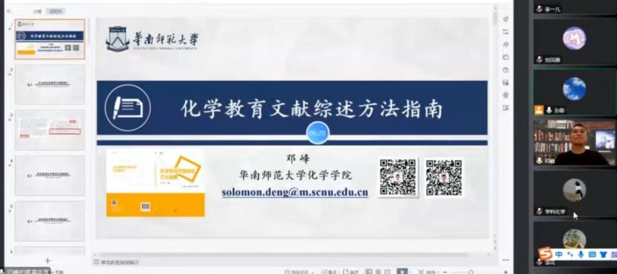 作题为《化学教育文献综述方法指南》线上专题报告,这是2022年“研究生科研专题讲座”第三讲。讲座通过腾讯会议直播,由卡通色情