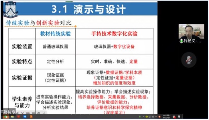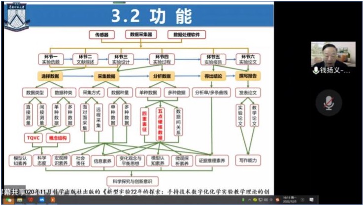 师生作专题学术报告,本次报告以“从传统实验演示与设计到手持技术数字化化学创新实验研究”为主题,通过腾讯会议线上开展,由孙影老师主持,20级化学师范生、化学教学论专业研究生、教学论专业教师共同参加。