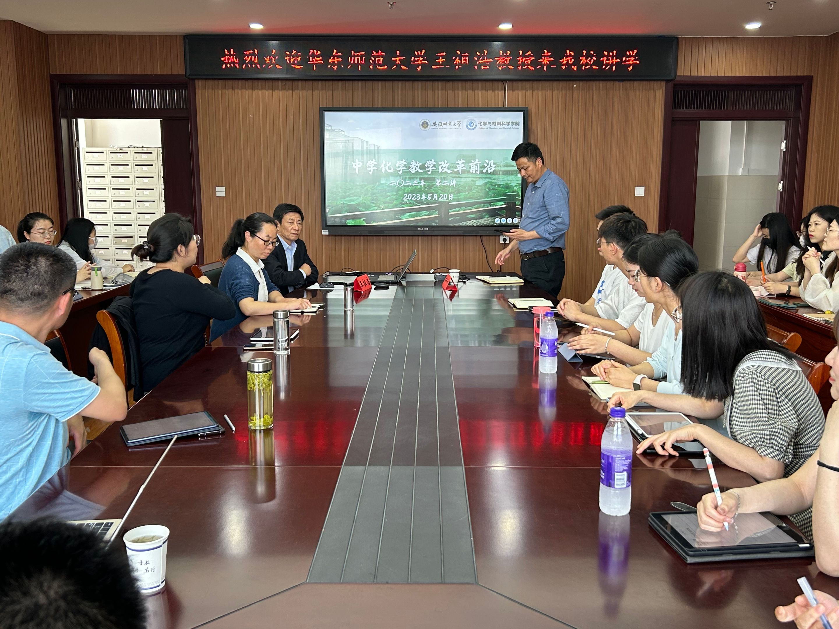 科研副院长周双六主持,化学教学论专业教师、全体化学教学论专业研究生参加了此次报告。