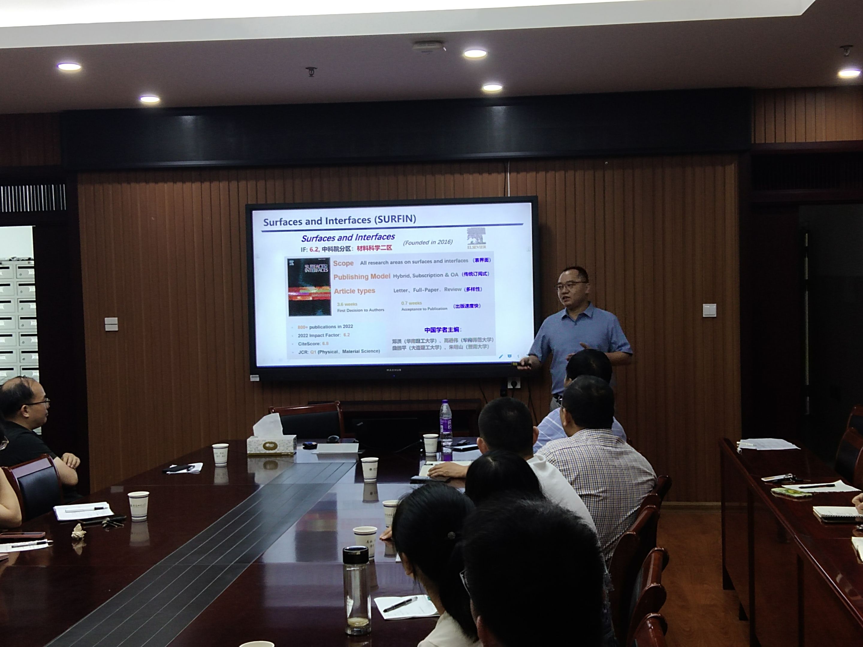 朱明山教授作了题为“压电效应在环境催化中的应用探索”的学术报告。朱教授首先简要介绍了压电效应的概念,即某些电介质在沿一定方向上受到外加机械作用力产生形变,其材料内部会形成极化现象并产生内建电场。由于压电效应可以捕捉环境机械力如水力、风力、振动等,形成极化内建电场,让其表面产生丰富的极化电荷,近年来在能源与环境催化方面引起极大关注。随后朱教授报告了近年来其课题组创新地通过压电效应强化传统高级氧化技术如光催化、过硫酸盐氧化、CO2催化还原等方面。如利用微弱水流作为驱动力,引发二维材料的压电效应,针对水环境中药物类污染物的去除效能和反应机制,展开一系列探索性研究。此外,针对传统钙钛矿类光催化剂在CO2还原方面的局限性,通过引入压电效应,拓展了钙钛矿类材料在CO2催化还原方面的应用,从而为推动压电效应在环境催化领域的进一步发展提供基础研究支撑。最后,朱教授与参加会议的师生展开了学术讨论与交流,也对与会师生提出的相关专业问题进行了详细的解答,现场气氛热烈。