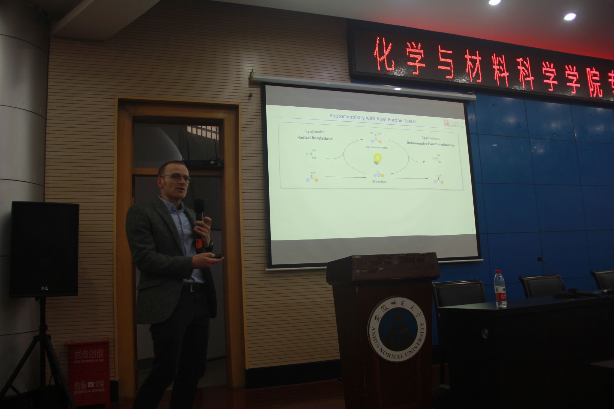 Adam Noble博士作了题为“Photochemistry with Boron”的学术报告。Adam博士首先介绍了有机硼化合物是有机化学中非常有价值的合成中间体,并且在药物化学中也有重要的应用。他们在几种批准的药物中均发现了硼酸及其衍生物,因此,需要一种能够将硼高效率地结合到有机分子中并具有良好底物通用性的合成方法。随后Adam Noble博士重点介绍他们最近在光诱导硼化反应方面的贡献,这种反应使各种容易获得的官能团转化为硼酯产物。会后,Adam Noble博士与会师生展开了一系列学术讨论,并回答了与会师生提出的问题。