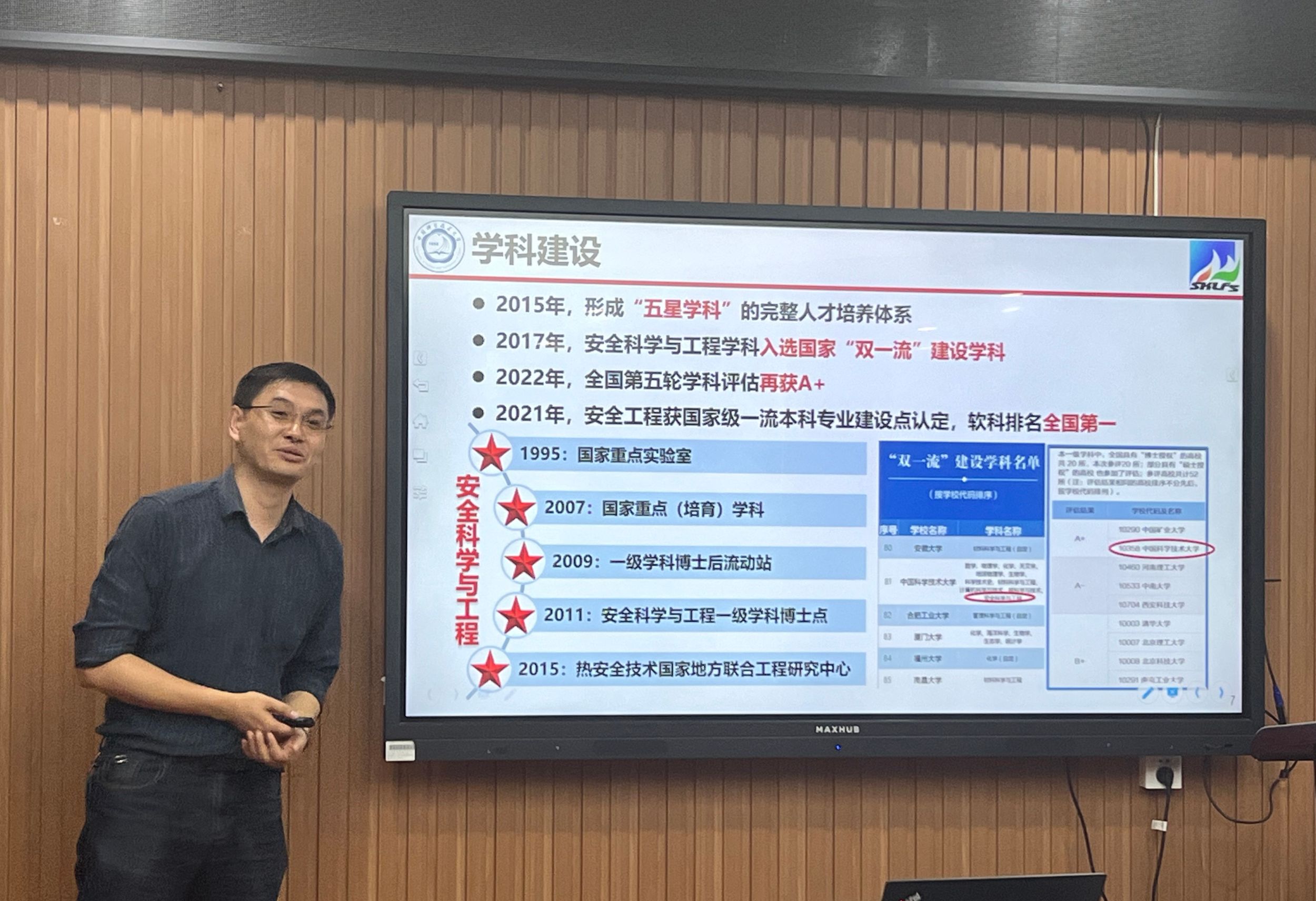 胡伟兆博士作了题为“无卤阻燃不饱和树脂复合材料的设计与应用研究”的学术报告。胡博士首先介绍了其在中国科学技术大学火灾科学国家重点实验室的工作,即从工程的角度对阻燃不饱和聚酯复合材料的设计、制备和应用,随后对阻燃不饱和聚酯进行了总结和展望。会后,胡伟兆博士与参会师生展开了系列学术讨论,并回答了参会师生提出的问题。