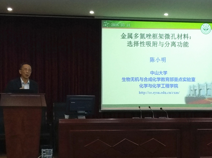 会上,中山大学陈小明院士作了“金属多氮唑框架微孔材料选择性吸附与分离”的报告,详细报告了其研究组在金属多氮唑框架在CO2的捕获与分离,烃类化合物的选择性吸附与分离以及天然气储存方面的应用,陈院士用幽默又激情的语言表达了对微孔材料的未来实现其工业化充满憧憬。南京大学左景林教授、中山大学苏成勇教授、苏州大学郎建平教授分别“分子自旋电子材料的研究”、“配位超分子自组装—纳米分子容器/反应器的配位空间功能化”、“金属硫族基配位聚合物:设计、组装及功能” 的学术报告。我校化学学院焦莉娟教授和夏云生教授分别报告了课题组在“氟硼有机染料的构建和光学调控”和“纳米粒子自组装体的光学性质调控与传感应用”方面的研究进展。会议期间,与会专家还围绕相关研究领域、科研动态开展了充分的交流与研讨,对我校卡通色情 十三五事业发展规划也提出了许多宝贵的意见和建议。