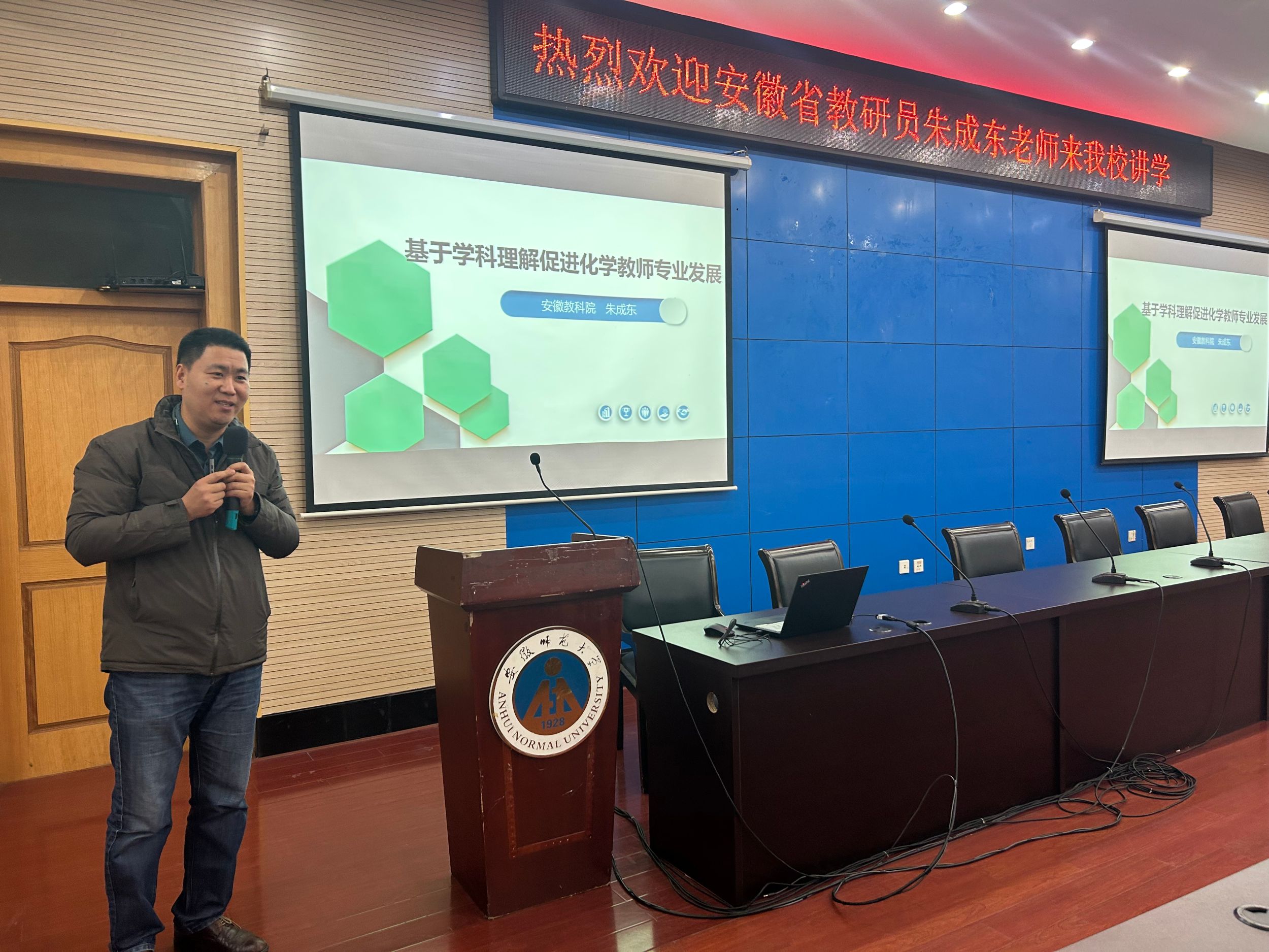 田一鸣)2023年11月24日下午,安徽省教育科学研究院化学教研员朱成东老师应邀来我校讲学,报告在花津校区会议中心第三报告厅举行,由卡通色情