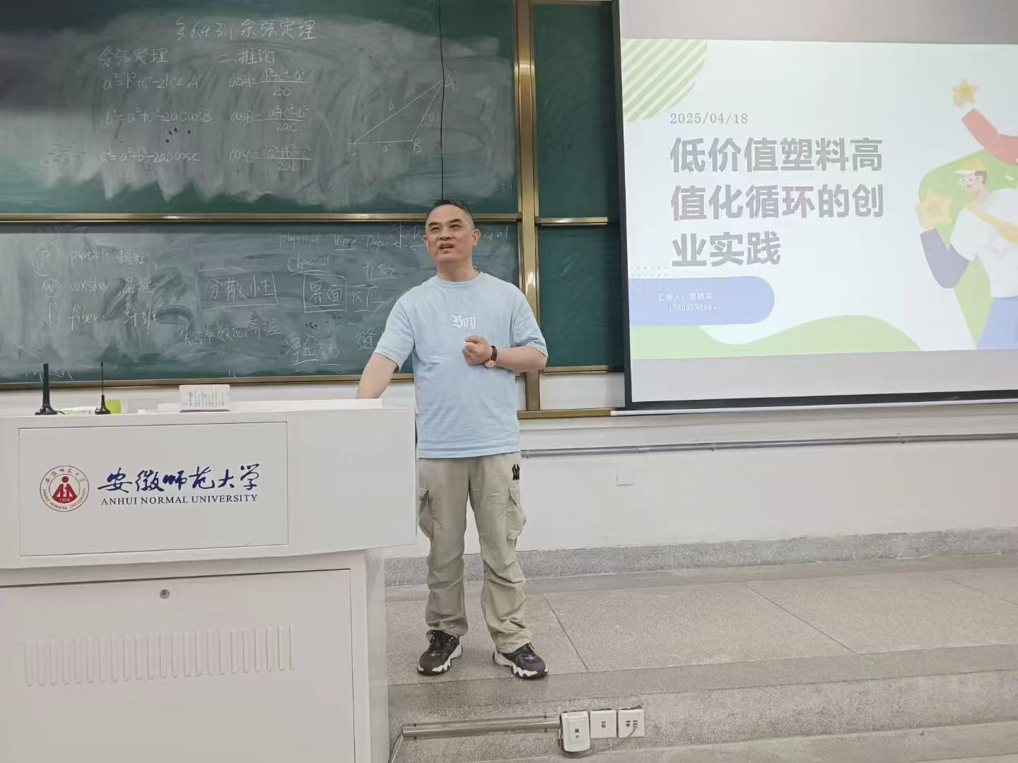 2025年4月18日下午,芜湖亚太公司董事长夏则荣先生受邀做客花津校区行知楼7号楼201教室,带来了一场题为“低值塑料高值化循环的创业实践”的专题讲座。讲座由卡通色情