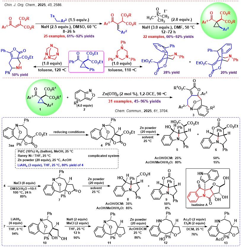 代表性论文 36. Xuelian Huang, Gaosheng Yang* and Zhuo Chai*, “Diastereoselective synthesis of benzazocines by Zn(OTf)2-catalyzed (4+4) cyclocondensation of multisubstituted donor–acceptor cyclopropanes with anthranils”, Chem. Commun. 2025, 61, 3704–3707. 35. Junqiang Jiao, Gaosheng Yang*, “Preparation of α-(Di(alkoxycarbonyl)methyl)chalcones and Their Application in the Synthesis of Multisubstituted Cyclopropanes”, Chin. J. Org. Chem. 2025, 45, 2586–2599. (焦俊强, 杨高升*, “α-[二(烷氧羰基)甲基]查尔酮的制备及其在多取代环丙烷衍生物合成中的应用”, 有机化学, 2025, 45, 2586–2599.) 34. Dongcheng Zheng, Rui Zhang, Wenlong Chen, Pengfei Yang, Gaosheng Yang* and Zhuo Chai, “Lewis Acid-Catalyzed Annulations of geminally-Disubstituted Cyclopropanes with Aldehydes or 1,3,5-Triazinanes”, Org. Lett. 2023, 25, 2577–2581. 33. Wenlong Chen, Huimin Li, Pengfei Yang, Dongcheng Zheng, Gaosheng Yang*, “Reaction of 2-Aroylmethylenemalonates with Corey Ylide”, Chin. J. Org. Chem. 2023, 43, 1472–1482. (陈文龙, 李慧敏, 杨鹏飞, 郑东程, 杨高升*, “2-芳甲酰基甲亚基丙二酸酯与Corey叶立德的反应”, 有机化学, 2023, 43, 1472–1482.) 32. Jinsong Hou, Gaosheng Yang*, “Reaction of Tandem Addition of Aliphatic Amines to Alkenylnitriles Catalyzed by Tris(o-dimethylaminobenzyl)yttrium”, Chin, J. Org. Chem. 2022, 42, 2070–2078.(侯金松, 杨高升*, “三(邻二甲胺基苄基)钇催化脂肪胺对烯腈的插入串联反应”, 有机化学, 2022, 42, 2070–2078.) 31. Jinsong Hou, Gaosheng Yang* and Zhuo Chai, “Lanthanide-Catalyzed Tandem Addition of Amines to Cyanoalkenes: Synthesis of Cyclic Amidines”, J. Org. Chem. 2022, 87, 453–463. 30. Peiying Su, Huimin Li, Wenlong Chen, Gen Luo, Gaosheng Yang* and Zhuo Chai, “Lewis Acid Catalyzed [3+2] Annulations of γ-Butyrolactam-Fused Donor–Acceptor Cyclopropanes with Aromatic Aldehydes and Aldimines”, Eur. J. Org. Chem. 2020, 5380–5387. 29. Xingyu Zhang, Manli Feng, Gaosheng Yang* and Zhuo Chai, “Sc(OTf)3-Catalyzed Chemodivergent Annulations of γ-Butyrolactone-Fused Cyclopropanes with Anthranils”, J. Org. Chem. 2020, 85, 430–440. 28. Yue Shen, Jun Chai, Gaosheng Yang*, Wenlong Chen and Zhuo Chai, “Stereocontrolled Synthesis of trans/cis-2,3-Disubstituted Cyclopropane 1,1-Diesters and Applications in the Syntheses of Furanolignans”, J. Org. Chem. 2018, 83, 12549–12558. 27. Pengfei Yang, Yue Shen, Manli Feng, Gaosheng Yang* and Zhuo Chai, “Lewis Acid Catalyzed [3+2] Annulation of γ-Butyrolactone Fused Cyclopropane with Aldehydes/Ketones”, Eur. J. Org. Chem. 2018, 4103–4112. 26. Yue Shen, Pengfei Yang, Gaosheng Yang*, Wenlong Chen, Zhuo Chai, “Lewis acid-catalyzed enantiospecific [3 + 2] annulations of γ-butyrolactone fused cyclopropanes with aromatic aldehydes: synthesis of chiral furanolignans”, Org. Biomol. Chem. 2018, 16, 2688–2696. 25. Manli Feng, Pengfei Yang, Gaosheng Yang*, Wenlong Chen, Zhuo Chai, “FeCl3-Promoted [3 + 2] Annulations of γ-Butyrolactone Fused Cyclopropanes with Heterocumulenes”, J. Org. Chem. 2018, 83, 174–184. 24. Zhuo Chai, Yemei Wang, Mujun Tang, Xiaolong Mu, Jinsong Hou, Gaosheng Yang*, “Chiral rare-earth metal complexes with a tridentate amido-fluorenyl ligand: Syntheses, structures and catalytic performance”, J. Organomet. Chem. 2017, 846, 236–241. 23. Zhuo Chai, Jiang Chu, Yunyi Qi, Mujun Tang, Jinsong Hou and Gaosheng Yang*, “Half-sandwich chiral rare-earth metal complexes with linked tridentate amido-indenyl ligand: synthesis, characterization, and catalytic properties for intramolecular hydroamination”, RSC Adv. 2017, 7, 1759–1765. 22. Deju Hua, Pengfei Yang, Yue Shen, Gaosheng Yang*, Zhuo Chai*, “PCl5-mediated ring-openings of trans-2,3-disubstituted cyclopropane-1,1-diesters: A stereoselective way to trisubstituted vinyl chlorides”, Tetrahedron 2017, 73, 1205–1210. 21. Gaosheng Yang*, Tingting Wang, Jun Chai, and Zhuo Chai*, “AlCl3-Catalyzed [3+2] Annulations of cis-2,3-Disubstituted Cyclopropane 1,1-Diesters with Cyclic Ketones: Diastereoselective Construction of Spirotetrahydrofurans”, Eur. J. Org. Chem. 2015, 1040–1046. 20. Zhuo Chai, Dezhi Hua, Kui Li, Shuangliu Zhou, Jiang Chu, Gaosheng Yang*, “Rare-earth metal complexes with tridentate linked amido-indenyl ligand: Synthesis, characterization, and catalytic properties for intramolecular hydroamination”, J. Organomet. Chem. 2014, 768, 136–139. 19. Zhuo Chai, Dezhi Hua, Kui Li, Jiang Chu and Gaosheng Yang*, “A novel chiral yttrium complex with a tridentate linked amido-indenyl ligand for intramolecular hydroamination”, Chem. Commun. 2014, 50, 177–179. 18. Gaosheng Yang*, Yongxian Sun, Yue Shen, Zhuo Chai*, Shuangliu Zhou, Jiang Chu, and Jun Chai, “cis-2,3-Disubstituted Cyclopropane 1,1-Diesters in [3 + 2] Annulations with Aldehydes: Highly Diastereoselective Construction of Densely Substituted Tetrahydrofurans”, J. Org. Chem. 2013, 78, 5393–5400. 17. Yongxian Sun, Gaosheng Yang*, Zhuo Chai*, Xiaolong Mu and Jun Chai, “AlCl3-promoted [3 + 2] annulation of cis-2,3-disubstituted cyclopropane 1,1-diesters with isothiocyanates: stereoselective synthesis of densely substituted 2-iminodihydrothiophenes”, Org. Biomol. Chem. 2013, 11, 7859–7868. 16. Yongxian Sun, Gaosheng Yang*, Yue Shen, Zan Hua, Zhuo Chai*, “Stereoselective cyclopropanation of a-bromochalcone with diethyl malonate promoted by K2CO3”, Tetrahedron 2013, 69, 2733–2739. 15. Gaosheng Yang*, Chongrong Luo, Xiaolong Mu, Tingting Wang and Xin-Yuan Liu*, “Highly Efficient Enantioselective Three-Component Synthesis of 2-Amino-4H-Chromenes Catalysed by Chiral Tertiary Amine-Thioureas”, Chem. Commun. 2012, 48, 5880–5882. 14. Gaosheng Yang*, Yue Shen, Kui Li, Yongxian Sun, Yuanyuan Hua, “AlCl3-Promoted Highly Regio- and Diastereoselective [3+2]Cycloadditions of Activated Cyclopropanes and Aromatic Aldehydes: Constru