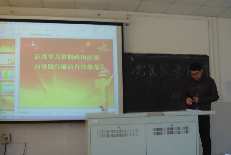 2015年11月26日上午,研究生无机化学党支部全体党员在生化楼2327教室召开《中国共产党廉洁自律准则》与《中国共产党纪律处分条例》理论学习会议,会议由无机党支部书记何博文主持,参加会议的为2013级、2014级、2015级全体无机专业研究生党员。