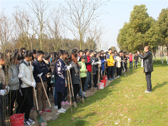 党委书记汪俊武、副书记余妍霞、副院长刘桂云、部分教师及学院各年级学生代表等来到位于新校区理化大楼南侧的植树点。为保证活动现场的安全及所植树苗的成活率,学院特别邀请后勤管理处校园管理科科长张金才现场向大家介绍了植树的总体安排、具体流程、基本要领以及安全注意事项等。