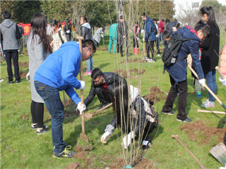 师生共一百五十人开展了以“师生同种一棵树、共建化学林”为主题植树活动,共同栽植了91株木槿树苗。学院师生通过实际行动倡导“绿色生活,人文环保”的理念,号召全体师生积极行动起来,植绿、爱绿、护绿,争做绿色使者,为美丽师大建设添砖加瓦。