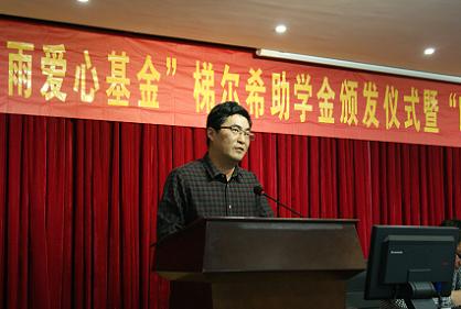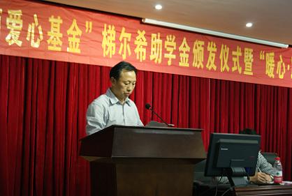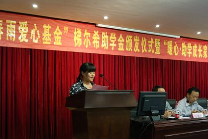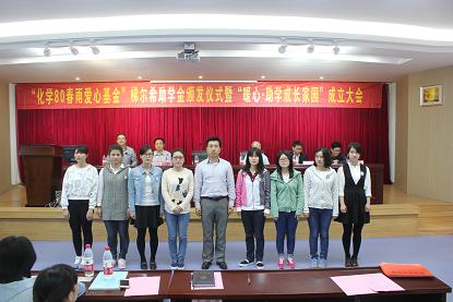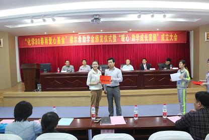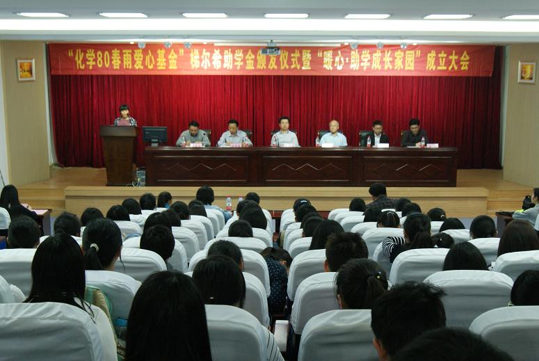 在赭山校区图书馆报告厅隆重举办"化学80春雨爱心基金"梯尔希助学金颁发仪式暨“暖心·助学成长家园”成立大会。出席大会的有梯尔希(南京)药物研发有限公司副总经理芮彬云、财务经理徐好,校教育基金会负责人傅乐义、方百盈,卡通色情