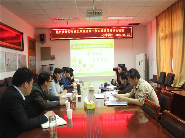 ,指导学院心理健康教育工作并评估院二级心理辅导站建设和试运行情况。院党委书记汪俊武、副书记余妍霞、院二级心理辅导站全体成员参加了评估活动。