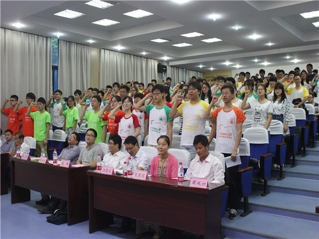 志愿者代表2014级材料化学专业曹泽平同学分享了自己去年参加社会的实践感悟,“在实践活动过程中流下的每一滴汗水,都格外的晶莹。”那一句句发自肺腑的感言无不激励着今年的实践志愿者豪迈前行。志愿者代表李玉雪同学带领志愿者郑重宣誓:秉乘卡通色情