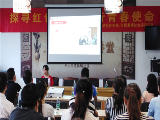 早晨6点50分,团队成员在安徽师范大学赭山校区食堂门口集合,收拾心情、整装待发,并于8点到达目的地龙山街道祥瑞社区居委会会议室。宣讲在9点正式开始,与会成员有社区书记、副书记,社区中共党员、预备党员和实践团队各成员。会场气氛颇好,大家热情洋溢。