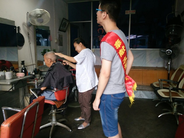 据悉,广济医院被安置了灾区的数名高龄老人,不仅生活难以自理,且由于担心家中房屋倒塌,情绪很不稳定。到达广济医院后,团队成员们积极展开慰问活动,不仅积极的了解了受灾情况,更亲切地与爷爷奶奶们聊天谈心,帮助他们走出洪灾的阴影,让他们安心休养,放松心情。其中,一位爷爷在聊天时说起了头痒,我们的两位男队员便主动带老人家前去理发,这一行动让安置点的老人们都十分感动。