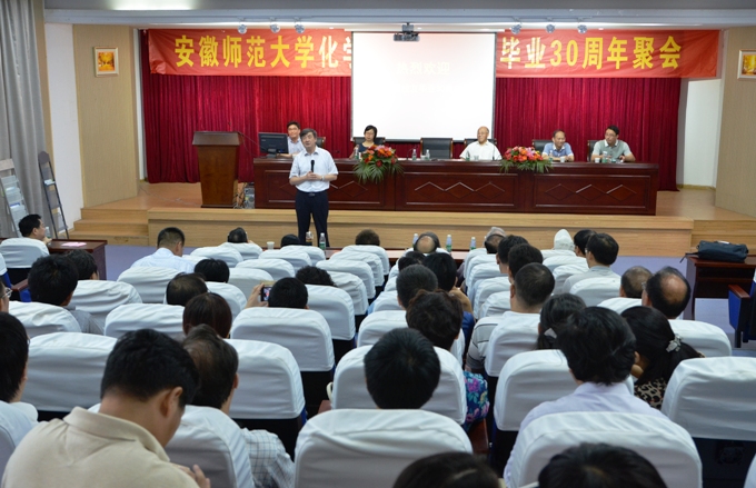 )7月15-17日,我校化学系86届80余名校友,怀着对母校深深的眷恋、对老师崇高的敬意、怀着久别重逢的渴望,阔别母校30年后,从美国、日本、新加坡和北京、上海、深圳、天津等地,重回母校,重温令他们终身留恋的大学生活,回味母校留下的难忘记忆,叙说当年的师生情、同学情。时光流逝,岁月如歌。三十年匆匆而去,三十年奋斗拼搏,不同的经历,不同的生活,可不变的永远是彼此浓浓的深情以及对母校深深的眷恋,无论走得多远,飞得多高,学子们心中永远有一个眷恋的地方,那就是母校——安徽师范大学。