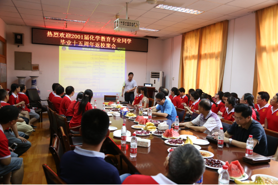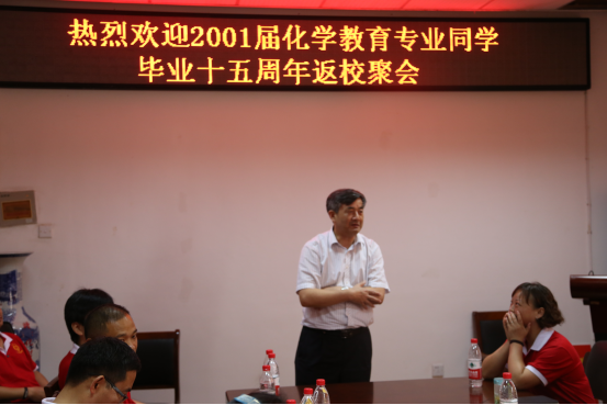 二楼会议室济济一堂,气氛热烈,2001届化学教育专业校友毕业十五周年返校师生座谈会在这里隆重召开。副校长王绍武,卡通色情