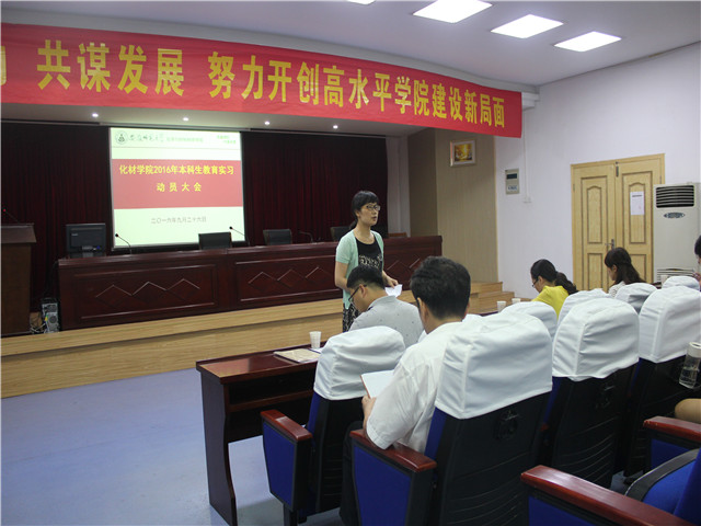 历来高度重视学生教育实习工作,学院及化学系多方联系实习学校,专门配备实习指导教师,分组进行校内培训,保证学生能以最佳状态投身于教育实习工作中。通过此次实习动员大会及一线化学老师的专题报告,同学们对教育实习工作有了更加全面的认识和了解,进一步明确自己的职责和任务。