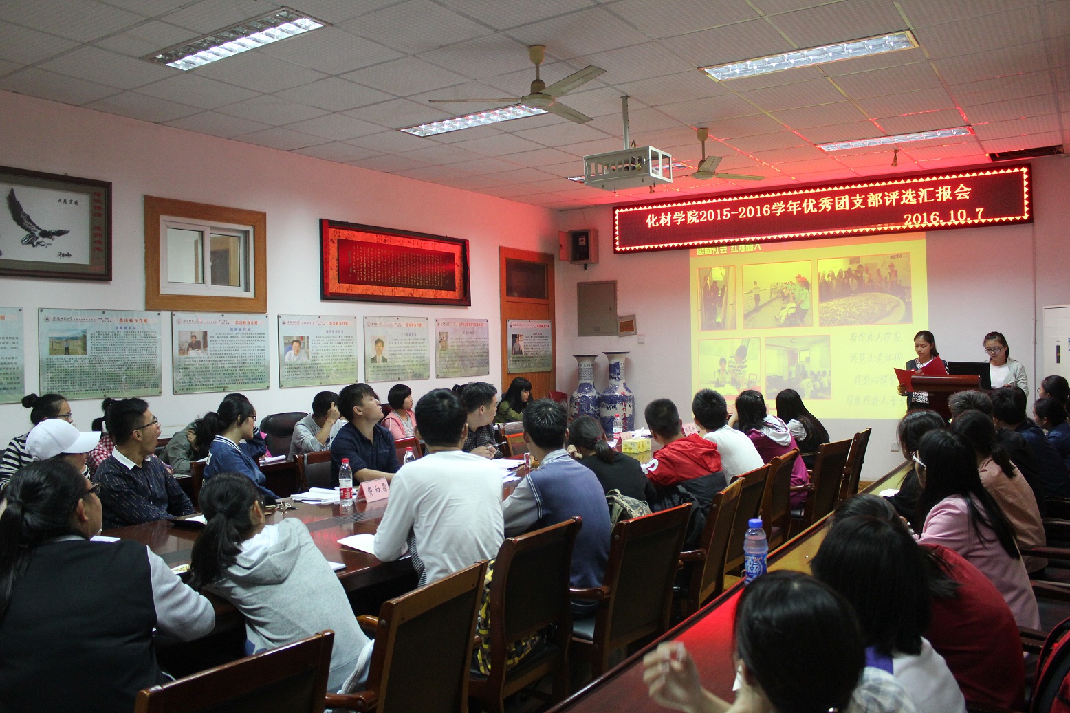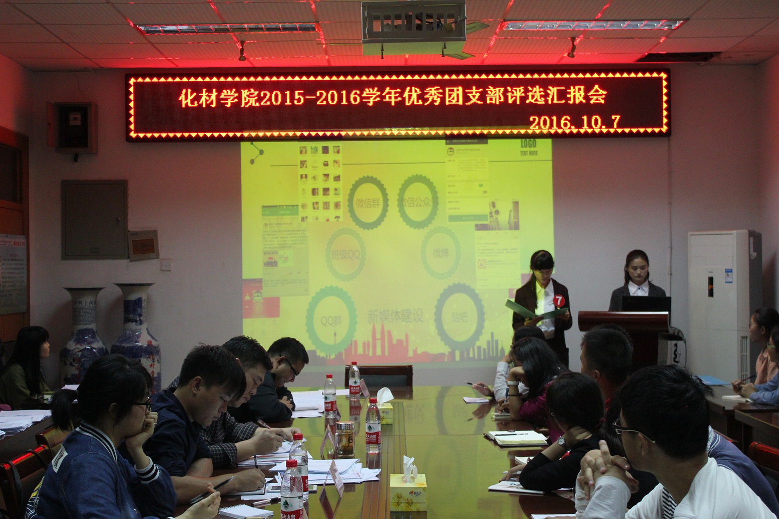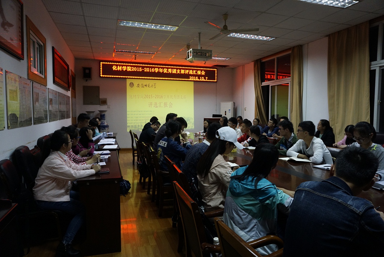 团委 邹雯婷)为推进团的基层组织建设,加强团员意识教育,表彰先进,树立典型,10月7日,学院团委举行了2015-2016学年“优秀团支部”评比汇报会。学院团委蒋建伟老师、程紫丹老师、袁青兵老师、王国良老师和费白露老师任评委。各班级学生干部代表参与投票。