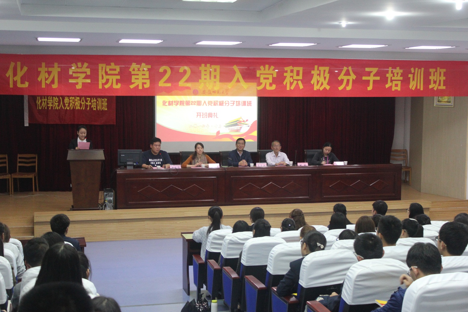 党委副书记、分党校副校长余妍霞,皖江学院化工系党总支副书记罗乐应邀出席了开班典礼。典礼由党校培训班班主任蒋建伟老师主持,102名入党积极分子参加了开班典礼。