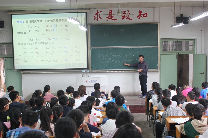 此次公开课的教学内容为“行列式的性质”。黄老师首先通过知识总结,回顾了上节课的重点内容,自然地导入了新的课程。接着,黄老师综合的运用讲述、多媒体、板书等多种形式,全面、具体的阐述了行列式的六条性质及其推论。缜密细致的推理、亲切朴实的语言以及恰到好处的提醒都使同学们更好地理解了行列式中的重难点和易错点。最后,通过典型习题的讲解练习,巩固了同学们的课堂收获。