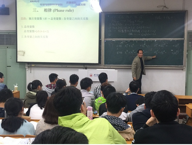 吴华强教授在生化楼2043教室为2015级材料化学2班全体同学讲述了一堂精彩的《相平衡》公开示范课,学院督导组、部分教师参加了本次课程。