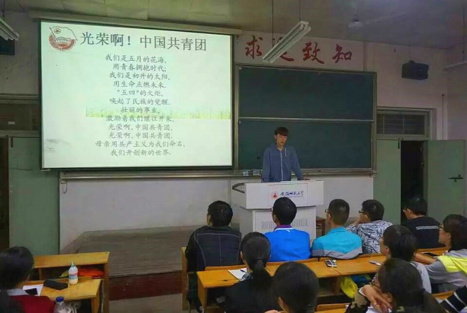 学习团章团史,树立远大理想。各团支部悉心组织团章团史专题学习班会,积极准备,勇于创新,观看红色影片、举办趣味知识竞赛,使枯燥的学习生动有趣。壮怀激烈的红色影片将大家只在历史课本上看过的无数仁人志士抛头颅洒热血壮的文字画面化,激起大家的自豪感与责任感;趣味团学知识竞赛使大家更好地认识团、了解团,在娱乐与互动中增长知识,增进友谊,加强团队合作精神。