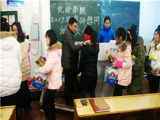 会议最后,学院领导及各系负责老师亲自为考研学子发放牛奶等营养品。天气虽冷,但是学院给予同学的关爱是暖的,同学们向上拼搏的热情也只增不减。大家纷纷表示一定会拿出百分之百的努力去迎接考试,并以满意的成果去报答学院和老师的关爱和期盼。