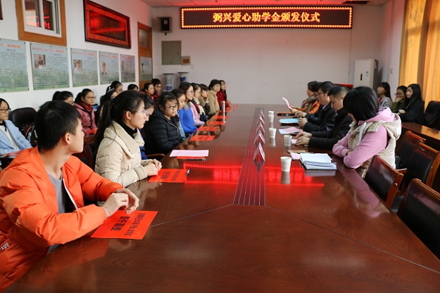 “弼兴爱心助学金”是由我校化学系97届毕业生薛琦先生作为发起人捐资设立的,用于资助学院三年级家庭经济困难的学生,首次捐资2万元,资助学生20名。此项助学金的设立,为学院家庭经济困难学生送来了温暖,激励他们刻苦学习,积极进取,立志成才,报效祖国。
