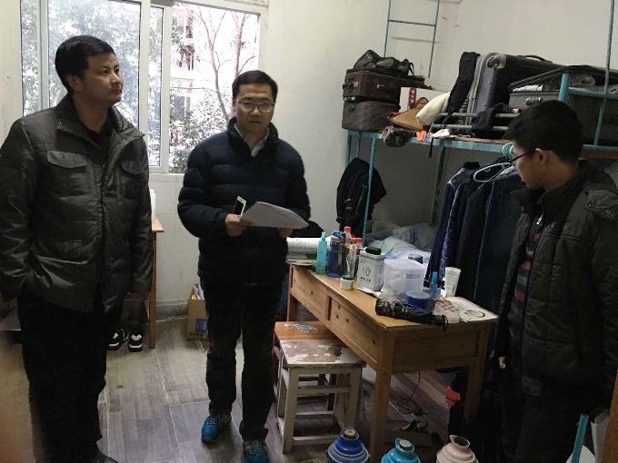 2016年12月22日下午学院结合校《安徽师范大学安全生产大检查活动工作方案》精神,学院领导班子及专业、学位点负责人分三队对本科、科研实验室以及办公产所、学生寝室进行了一次集中大检查,主要针对水电是否安全使用、各类消防设备、灭火毯是否齐全摆放是否在明显位置、化学试剂和仪器是否安全使用和存放、废气废液废渣处理是否得当,《卡通色情