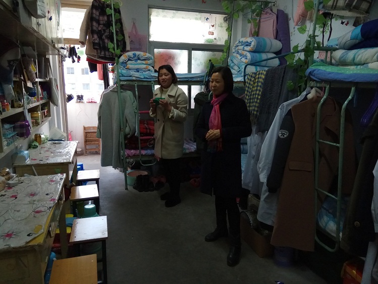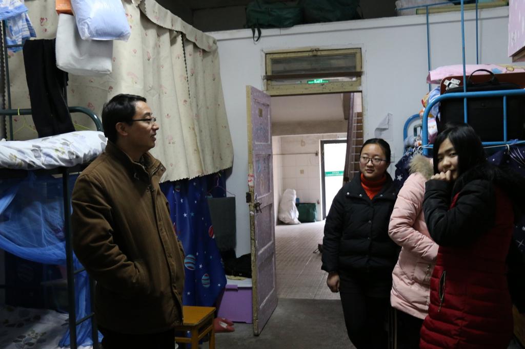 在走访过程中,领导老师亲切询问学生假期的学习和生活状况。书记汪俊武、副院长张小俊在走访新生寝室时,重点询问了同学们生活中遇到的困难,新学期的学习规划情况,勉励一年级同学要树立明确的目标、勤奋学习、积极进取。院长高峰、副书记余妍霞在走访毕业班宿舍时,分别对现在正在积极求职的毕业班学生表示支持和鼓励,希望他们要树立“先就业再择业”的就业观念,求职过程中要保持信息畅通,积极主动认真准备。副院长周双六、刘桂云在走访二三年级的学生寝室时,重点关心了学生的学业发展,认真询问了同学们的近期目标和规划,鼓励同学们要学好专业课,夯实基础,为考研和就业做好充分的准备。学院领导和辅导员老师除了了解学生的生活、学习情况,还重点排查了宿舍的安全隐患。新学期伊始,大部分同学精神面貌良好,对于少数在卫生和安全方面存在问题的寝室,也现场明确提出整改意见。