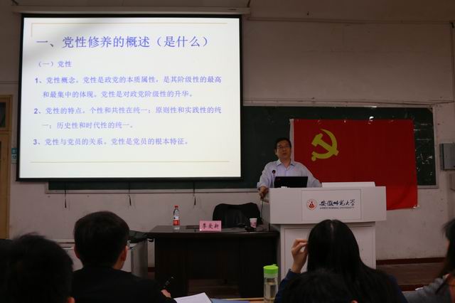分党校于教学楼1401教室开展了关于《新时期共产党员党性修养》专题培训。校党委组织部部长季爱新应邀担任主讲嘉宾,本期培训班全体学员参加,学习活动由培训班班主任王国良主持。