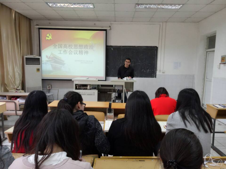徐硕同志以《把思想政治工作贯穿教育教学全过程》为主题,结合全国高校思想政治工作会议精神解读为落脚点,详细讲解高校思想政治工作关系高校培养什么样的人、如何培养人以及为谁培养人这个根本问题。要坚持把立德树人作为中心环节,把思想政治工作贯穿教育教学全过程,实现全程育人、全方位育人,努力开创我国高等教育事业发展新局面。