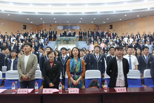党委书记汪俊武、院长高峰的手写寄语等元素,精美的设计、贴心的叮嘱获得了同学们的一致好评。第二份礼物随着仪式开始接踵而至,各班级任课教师、辅导员、神秘的家长嘉宾以视频为媒介纷纷送上了成人礼祝福,随着视频的播放,同学们时而掌声雷动,时而安静聆听,时而绽放笑颜,精心设计的环节将现场气氛推向了高潮。随后,全体与会人员满怀激情齐声诵读了梁启超《少年中国说》选段,合唱了共青团团歌,领导老师的带头参与更让同学们热情高涨。
