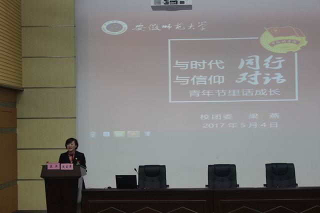 接着,梁燕书记送上了第三份成人礼物——一堂生动、接地气的团课,她以“与时代同行,与信仰对话——青年节里话成长”为主题,以两段党团视频引入,勉励同学们做一名“顶天立地”的时代青年。她通过分享师大官网的一篇“五四”青年节评论,希望同学们能“上顶天”,涵养“三气”,即蓄底气、扬正气、蕴大气,立志加强学习、弘扬正气、胸怀国家。她还希望同学们能够“下立地”,成为“三种试剂”,即沟通上下的润滑剂、团结左右的粘合剂、激发彼此的催化剂;做好“三件事情”,即做正确的、有意义的、有意思的事情;引用校党委书记顾家山老师养成“永不知足的学习习惯、追求卓越的工作习惯和文明健康的生活习惯”三个习惯的寄语,鼓励同学们做新时代的弄潮儿。