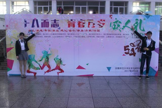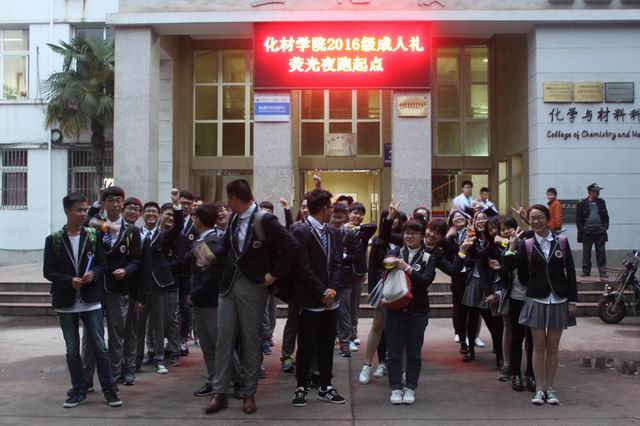 5月4日晚6时,学院分专业开展了成人自评荧光夜跑活动。同学们从生化楼下集合出发,结伴奔跑至田楼下,依照学院精心制作的成人自测标准,对自身素质进行了自我评价。标准围绕“修身、齐家、治国”三个层次设问,同学们经过精心思考、客观自评,自评合格者纷纷在幕布上进行签名宣誓,向精彩人生不停追逐奔跑,对未来生活许下庄重诺言。濛濛细雨淋不灭参与热情,同学们三五成群在幕布前合影留念,青春朝气蔓延开来,吸引不少路人驻足观看。