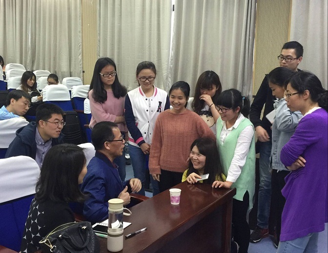 报告结束后,同学们与张景富老师进行了热烈的讨论,就中学化学课堂教学导课方法及讲解技巧进行了交流。张老师运用生动幽默的语言以及切合实际的中学案例使整个报告非常成功,同学们均表示受益匪浅。