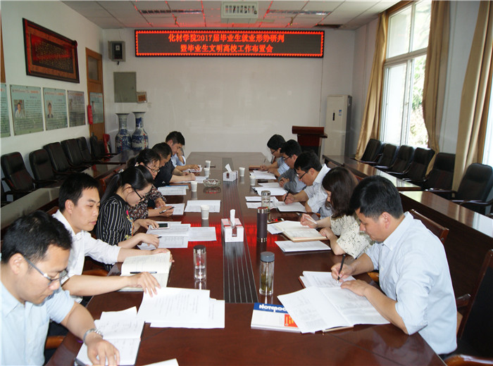 在生化楼会议室召开2017届毕业生就业形势研判暨毕业生文明离校工作布置会。学院领导班子成员、各专业负责人及本科生、研究生毕业班辅导员参加了会议。会议由汪俊武主持。