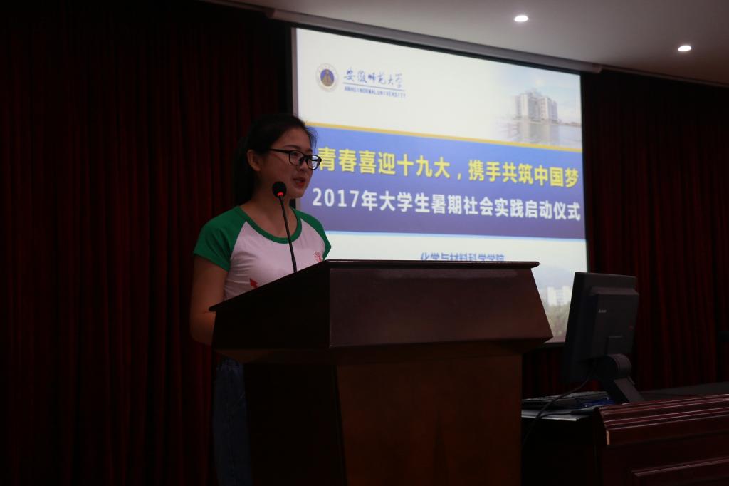 关于成立2017年暑期“三下乡”社会实践活动团队的通知》,明确了2017年社会实践校院两级重点团队名单。化工系主任罗时忠老师作为暑期社会实践团队指导老师代表发言,鼓励化材学子在志愿精神的感召下,结合专业特色,发挥专业特长,积极投身实践,实现自我成长。2015级材料化学专业学生刘茹代表社会实践志愿者发言,她号召全体实践队员秉乘卡通色情