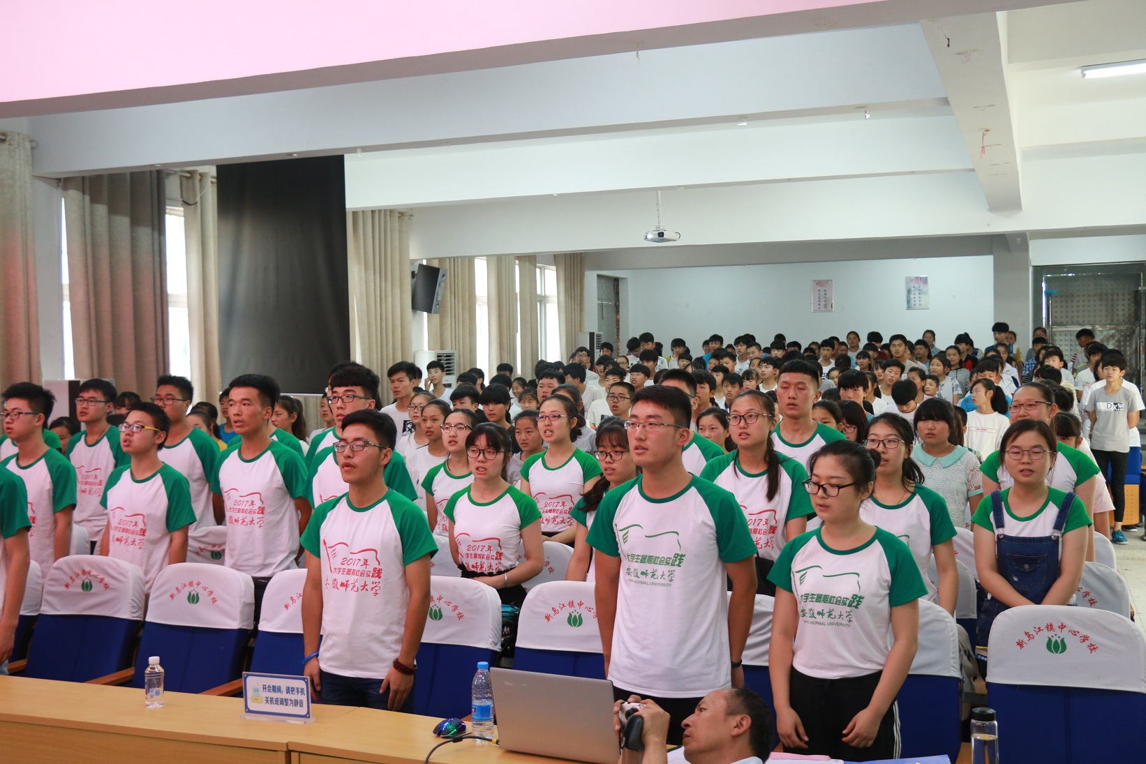 党委书记汪俊武、副书记余妍霞等应邀出席,32名社会实践志愿者和新乌江镇中心校九年级学生参加仪式。活动由学院团委副书记蒋建伟主持。