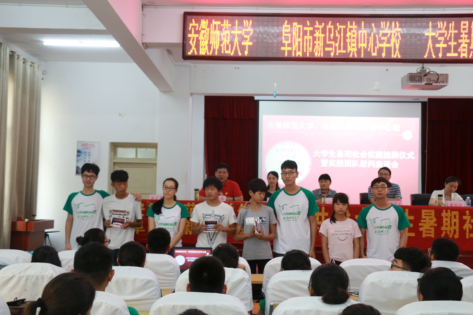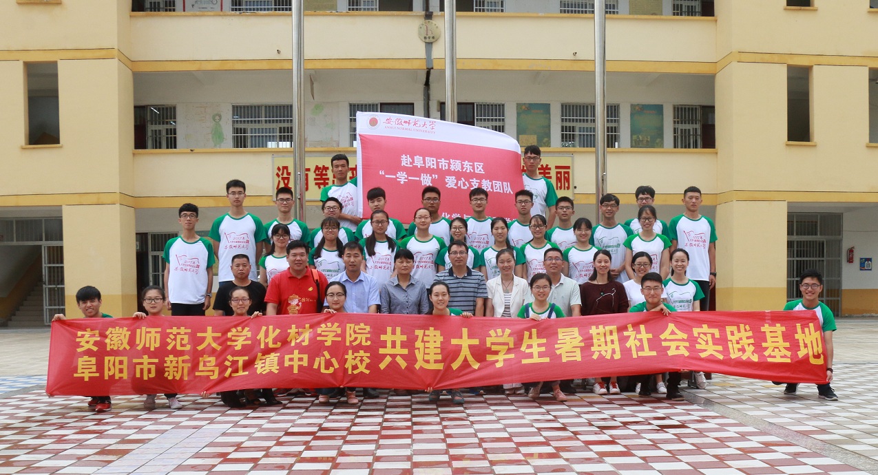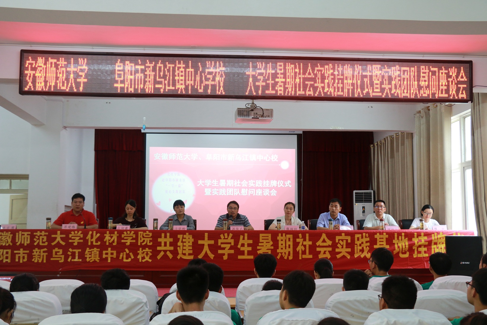 与阜阳市颖东区新乌江镇中心校合作共建大学生社会实践基地揭牌仪式在新乌江镇中心校举行。阜阳市颖东区副区长沙学珍、新乌江镇人大主席牛任飞、新乌江镇中心校总校长宫鹏飞,安徽师范大学校团委副书记张园园、卡通色情