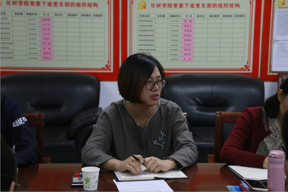本网讯(蒋建伟)为扎实推进“两学一做”学习教育常态化、制度化,认真落实好“讲政治、重规矩、作表率”专题教育活动相关要求,9月29日,化学系本科生党支部开展“作表率,我们怎么办”专题讨论会,学院党委副书记余妍霞、校党委组织部党校办主任朱琳以及支部全体党员参加会议,会议由党支部书记蒋建伟主持。